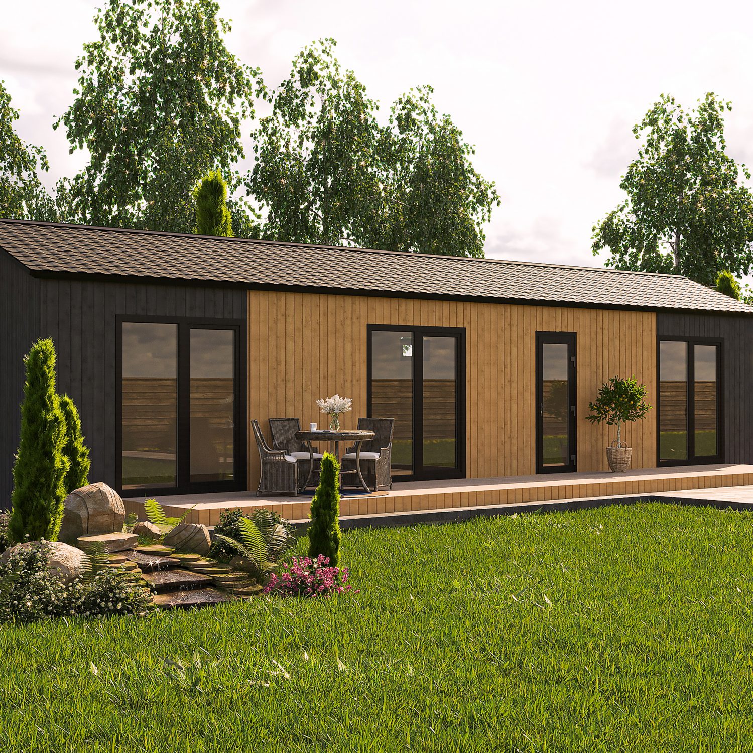 Für kleine Familien empfehlen wir das 47m² große Modell „Moderna“. Das Mini-Haus kann funktional und barrierefrei eingerichtet werden. Die Fassade besteht aus Kiefernholz und ist mit Leinöl beschichtet. Der Bodenbelag kann mit Fliesen, Laminat und Fußbodenheizung ausgestattet werden.